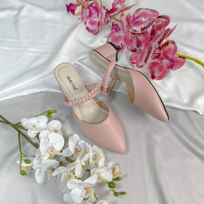 Seis Vania Sandal Mules Heels Wanita | Slip On 5Cm - Peach 41