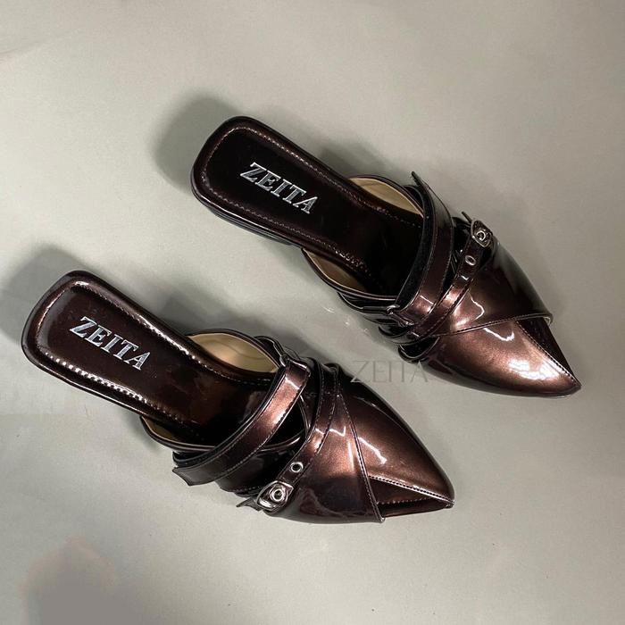 ZEITA Heels Mule Wanita Terbaru Model Simpel Tinggi Hak 3cm - Hitam 37