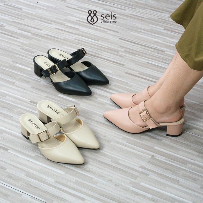 Sendal SEIS Cloe Mules Wanita Heels 5 cm - CREAM 36