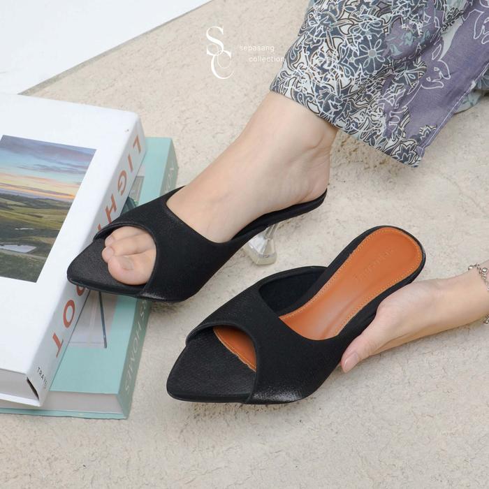 SEPASANG COLLECTION Kaila Sendal Heels Wanita Hak 7 Cm Sandal Pesta Graduation Sepatu Natal - Black 35
