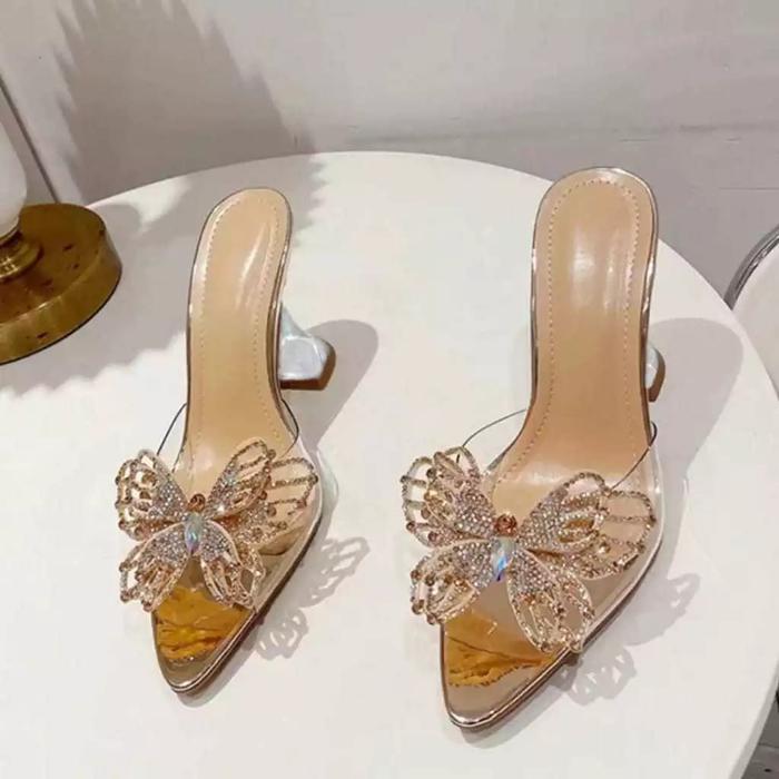 Jasmin Kekinian Sandal Heels Wanita Premium Hak Kaca dengan Hiasan Motif Kupu-kupu Elegan - yellow 37