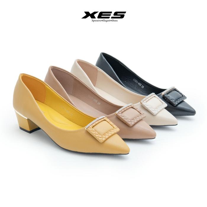 XES VIVI-465 Sepatu Chunky Heels Wanita 5cm Sepatu Kerja Wanita Black - APRICOT 36