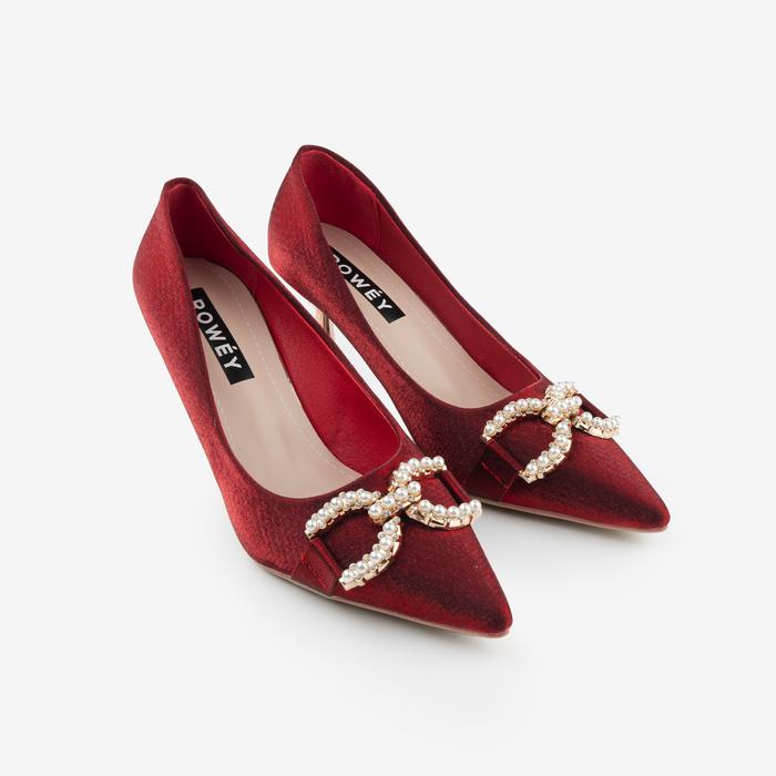 Rowey Sepatu High Heels 9cm Super Mewah Inez Karet Shoes - CREAM 35