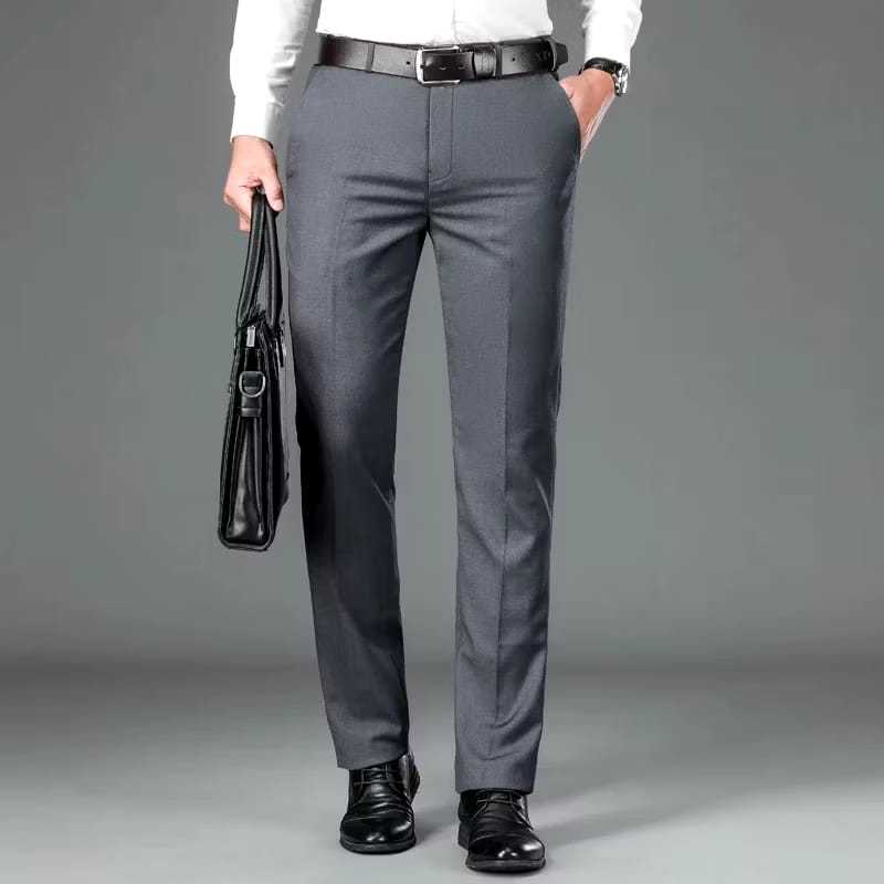 Celana Bahan Formal Pria Slim Fit Hitam Abu Tua