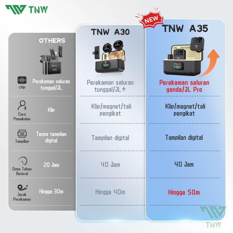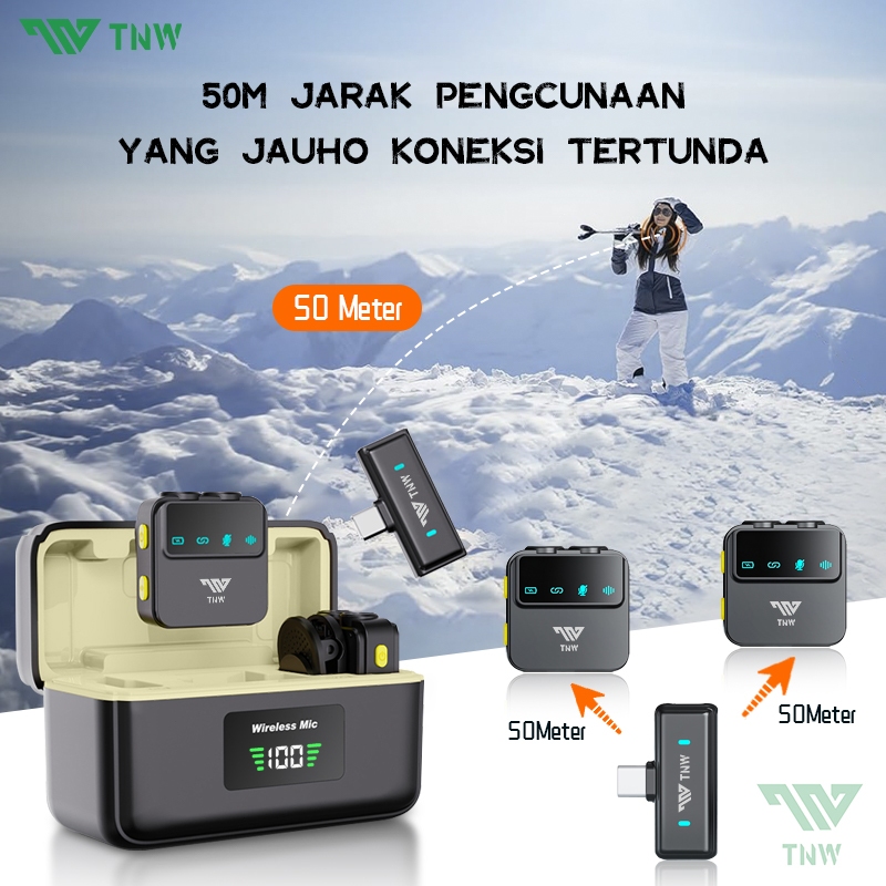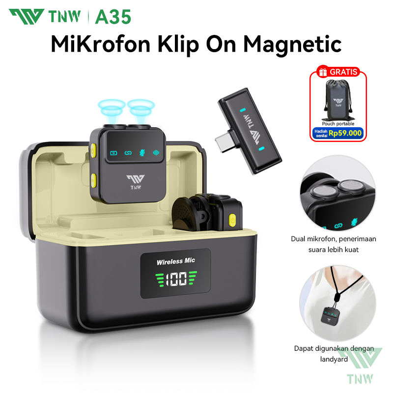 TNW A35 Wireless Microphone Clip On Mic Magnetic Mikrofon Nirkabel Lavalier Dual Mic Noise Reduction Untuk Video Vlog Stream