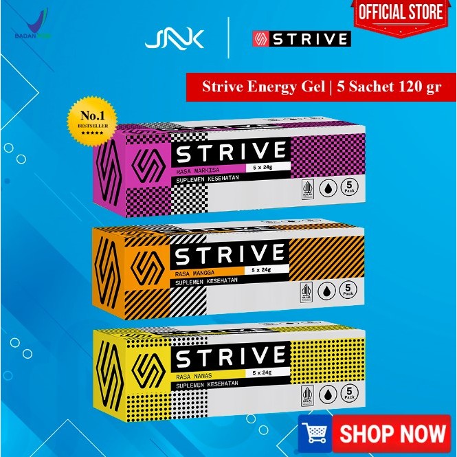 STRIVE Energy Gel Box isi 5 Sachet | Energy Booster Minuman Lari Sepeda Olahraga Running Endurance