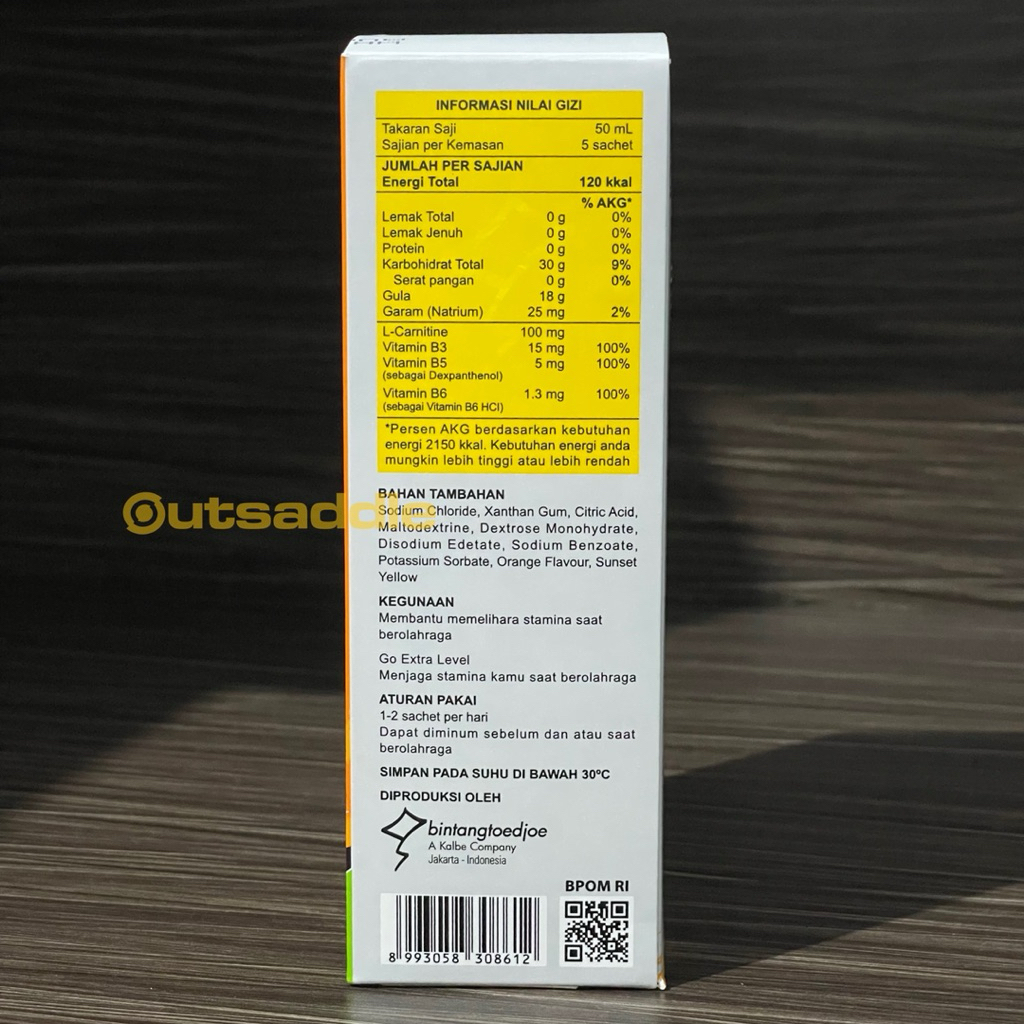 EJ SPORT Energy Gel 50ml Rasa Orange 1 Box Isi 5 Gel Karbohidrat Dan L‑Carnitine Cepat Serap untuk Olahraga Lari Sepeda Fitness