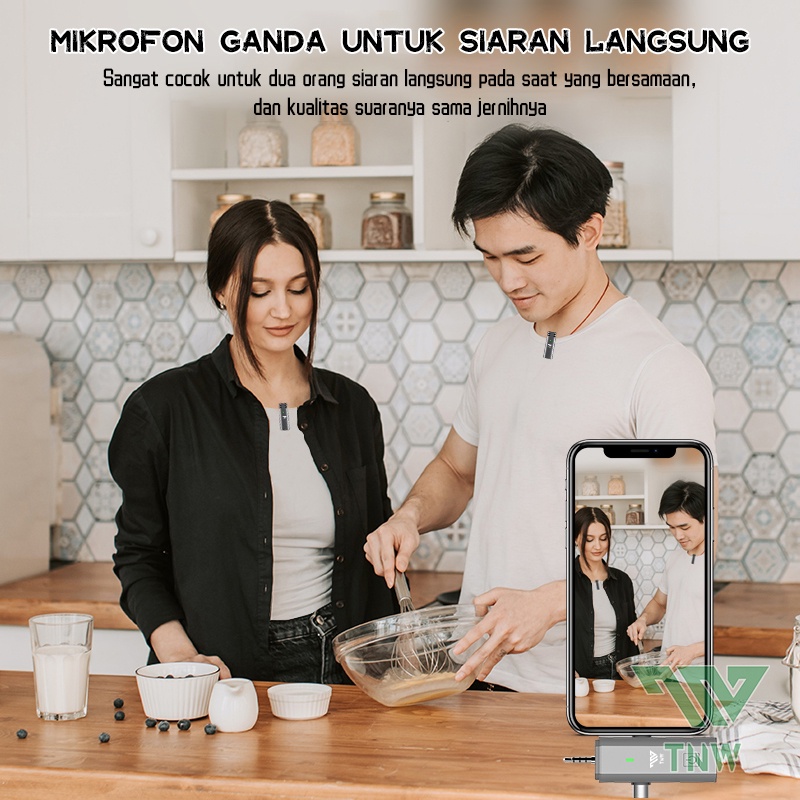 TNW 3 IN 1 Microphone Wireless Dual Mikrofon Clip on Mic bluetooth Tanpa kapel Microphone r suara jernih mic wireless original Untuk Vlog