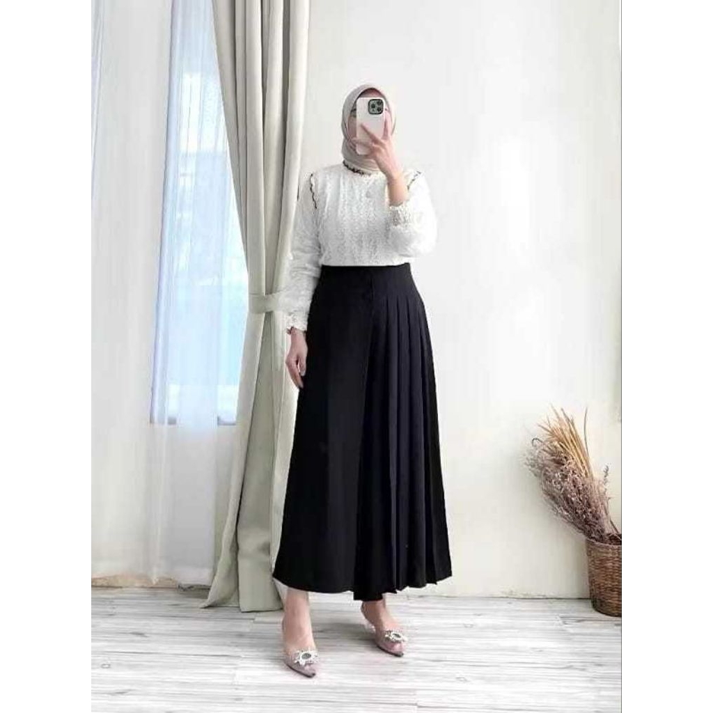 Celana Kulot Husna Kancing 2 |Rok Celana Wanita Highwaist Premium Korean Style