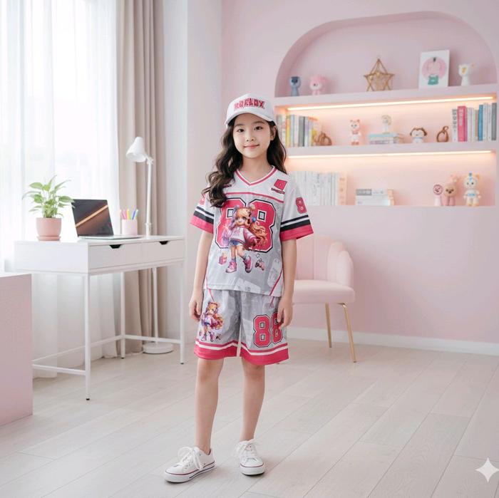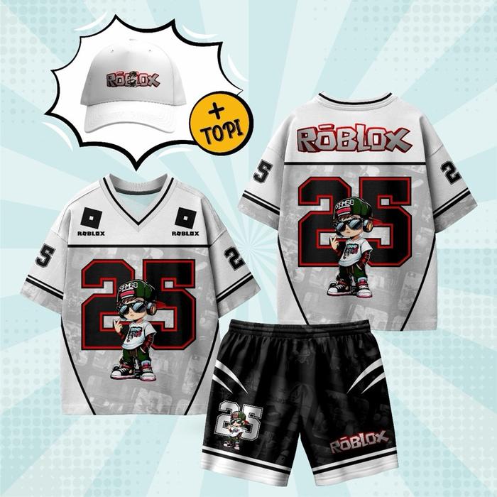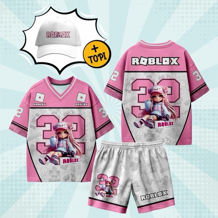 SETELAN ANAK JERSEY ROBLOX FREE TOPI 2-8TAHUN OVERSIZE - HITAMLUFFY, S 2-3TAHUN