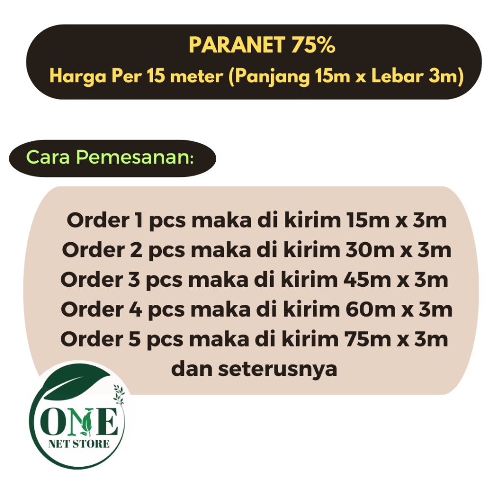 Jaring Paranet 75 Persen 15M X 3M | Anti Uv | Kualitas Import | Grade A |
