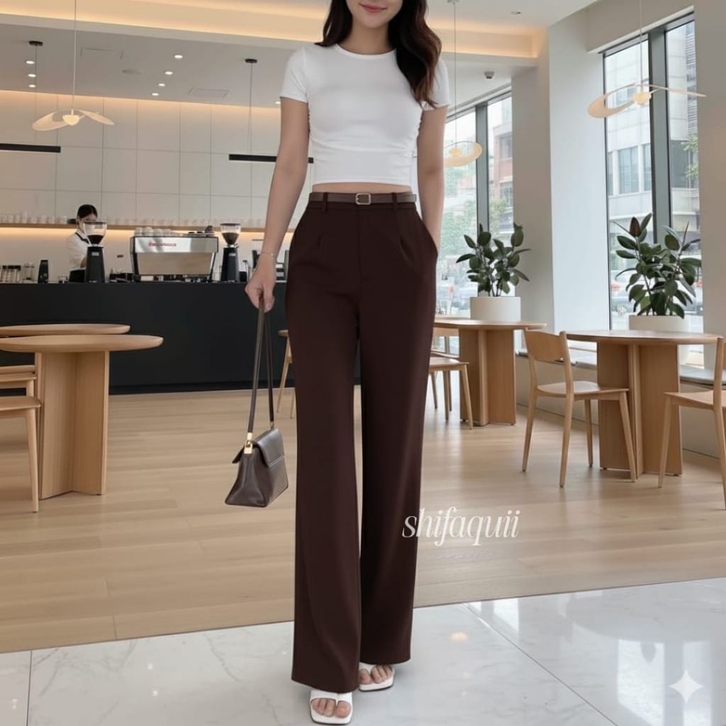 Celana Wanita Wide Leg - Mor Pants High Waist Premium