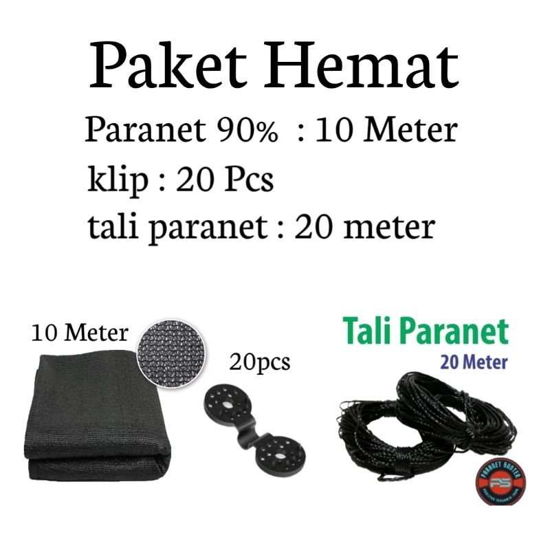 Jaring Paranet 90 Persen Lebar 3 Panjang 10 Meter + Klip + Tali ( Paket Hemat )