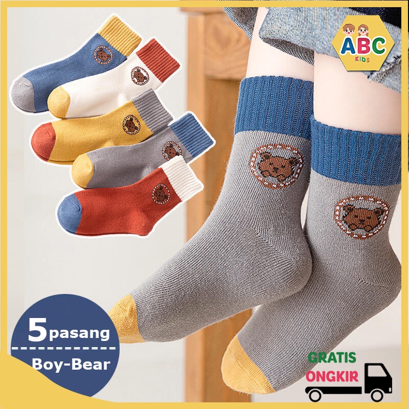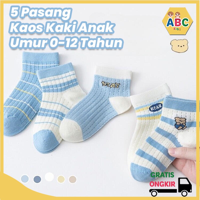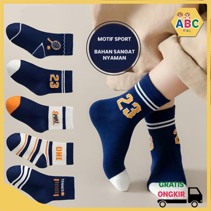ABC KIDS KAOS KAKI ANAK ISI 5 Pasang Kaus Kaki Olahraga Laki-laki usia 2 3 4 5 6 7 8 9 10 11 12 Th