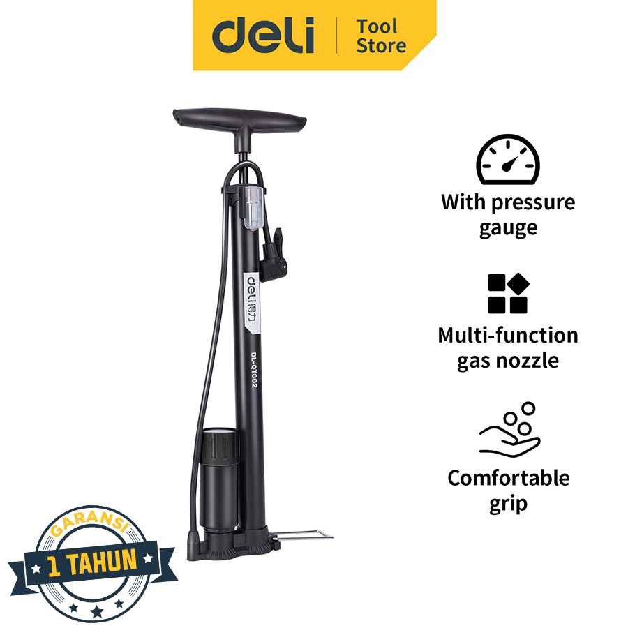 FLASH SALE Deli Air PumpPompa Angin Ban Sepeda Manual 38 x 500 Dilengkapi Barometer DLQT00X Alat Perkakas