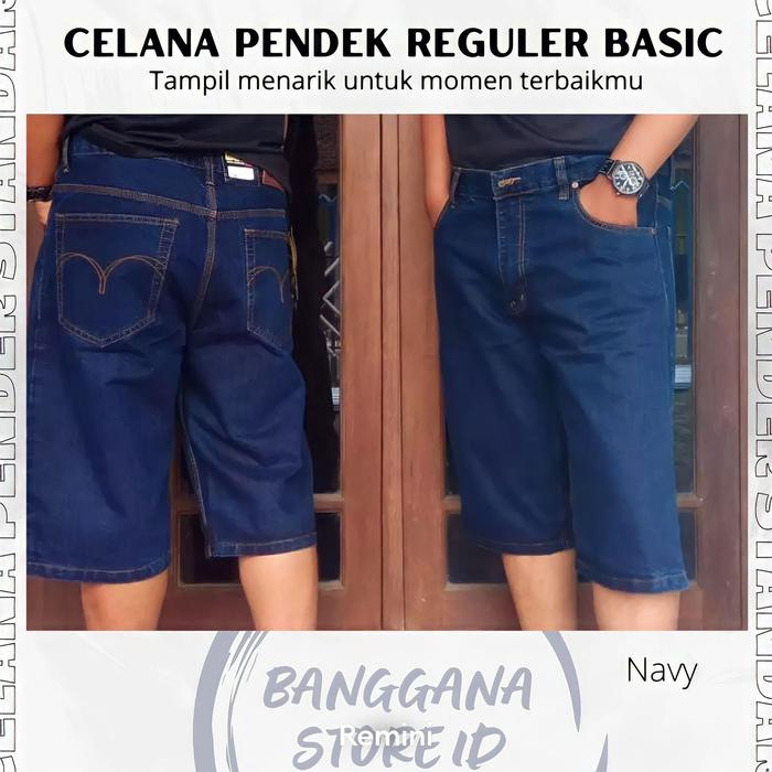 BIG SIZE CELANA PENDEK PRIA NON STRETCH TIDAK MELAR cel pen denim jumbo - NAVY 27