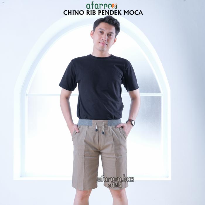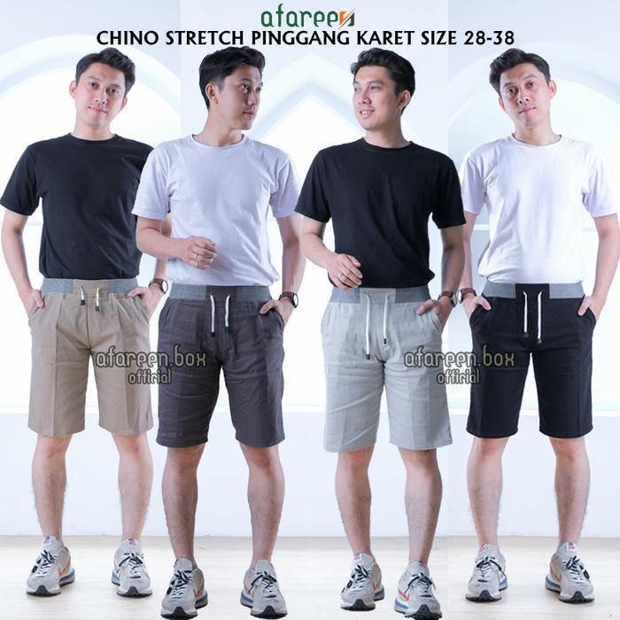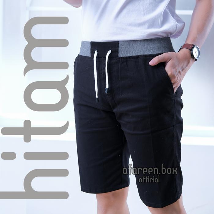 AFAREEN - Chinos Pendek Pria Rip Celana Chino Pinggang Karet Kolor Original Shorts Pants Distro Size 28-42 - HITAM 28