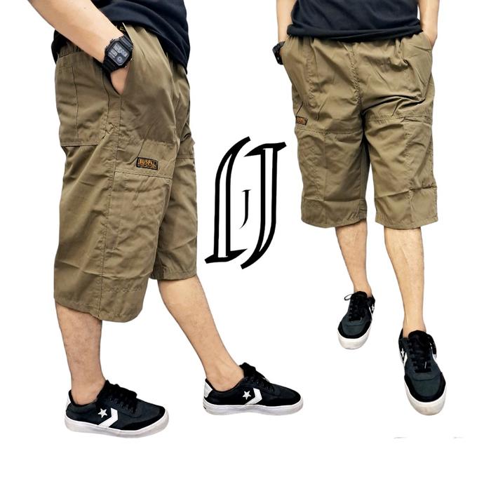 celana pendek Akulaku 7/8 pria di bawah lutut L fit XL Polos Kantong - crem L/Xl