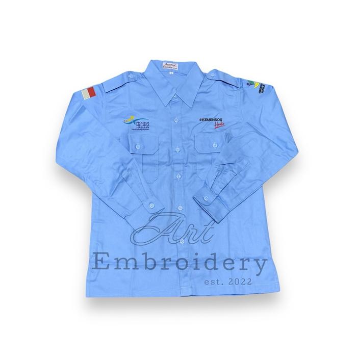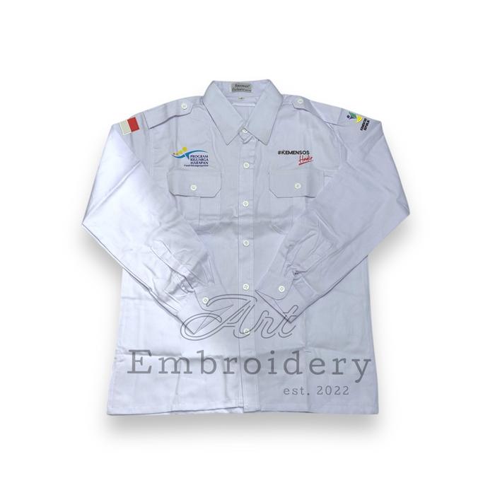 Kemeja Kemensos Hadir Full Bordir Komputer Pria - Wanita Panjang Bahan American drill