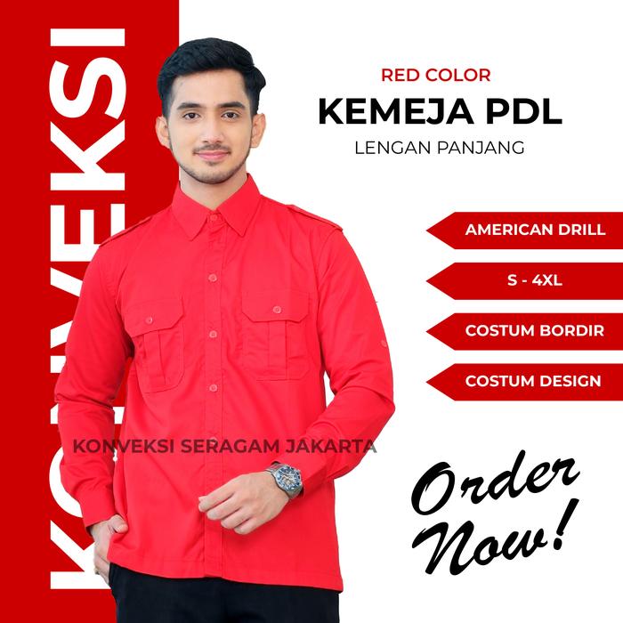 PDL Baju Kemeja Seragam Kerja Pakaian Dinas Lapangan Merah Bisa Bordir