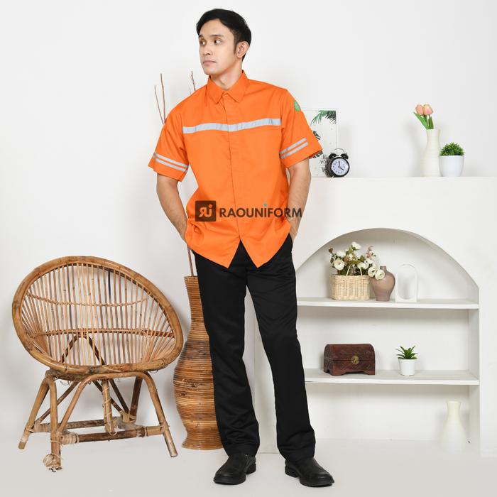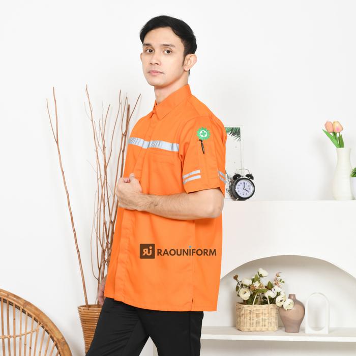 KHUSUS BORDIR-RAOUNIFORM Atasan Wearpack Lengan Pendek Pria Custom Bordir Oranye Seragam Proyek