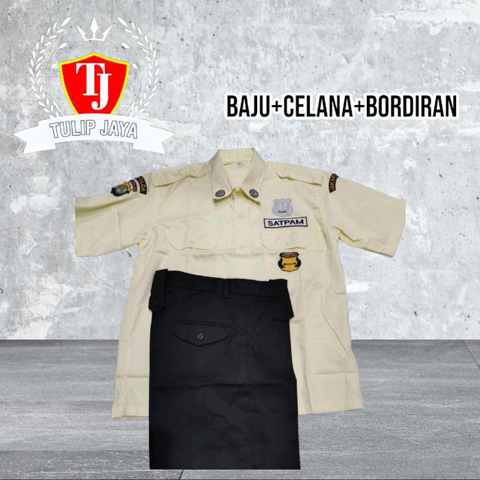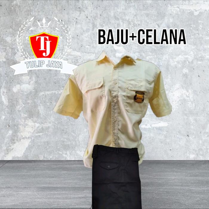setelan pdh satpam krem terbaru fullset bordir/seragam satpam pdh krem/baju satpam krem terbaru