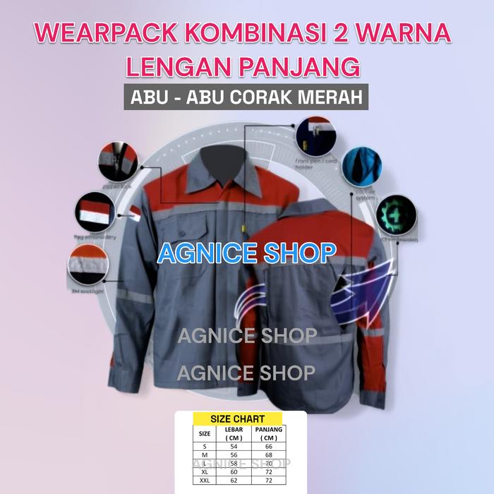 Wearpack Safety ATX Airflow Design Anti Gerah Lengan Panjang Kombinasi 2 Warna - Merah, Abu