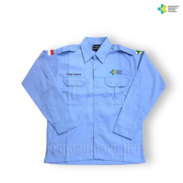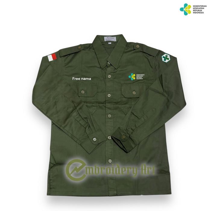 Kemeja Kemenkes RI Pria-wanita Bahan American drill Lengan Panjang full Bordir