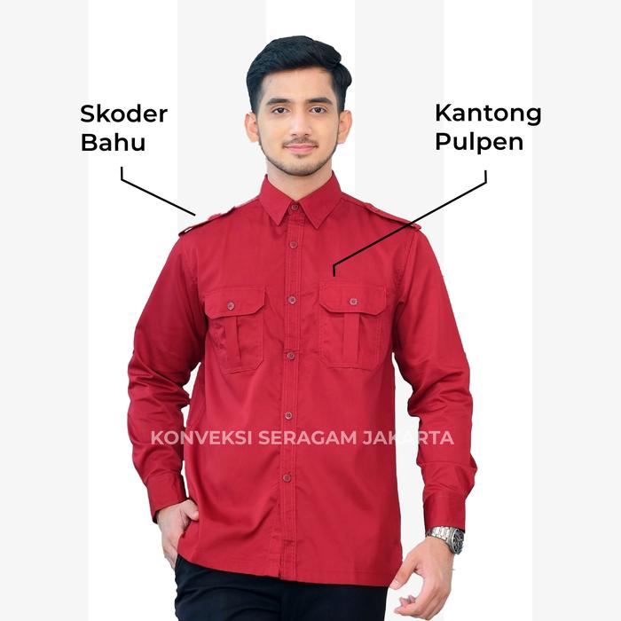 PDL Baju Kemeja Seragam Kerja Pakaian Dinas Lapangan Maroon Bordir