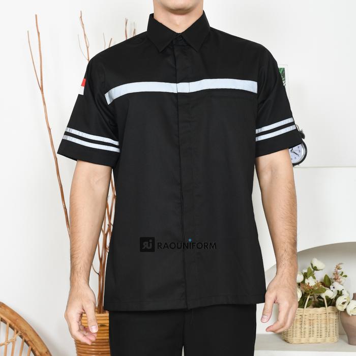 RAOUNIFORM Baju Kerja Lapangan Hitam Lengan Pendek Seragam Teknisi Safety Kemeja Kerja Proyek