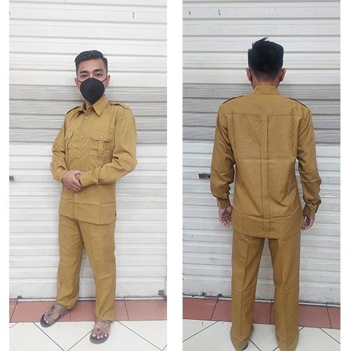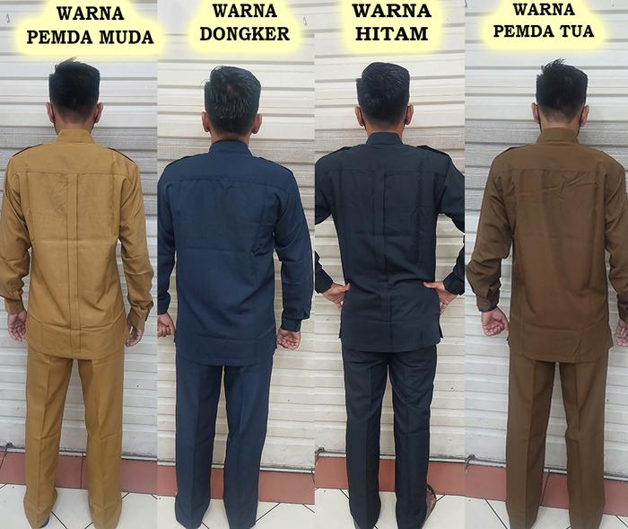 setelan baju dinas PDH laki-laki lengan panjang warna pemda tua-biru dongker-pemda muda-hitam ukuran