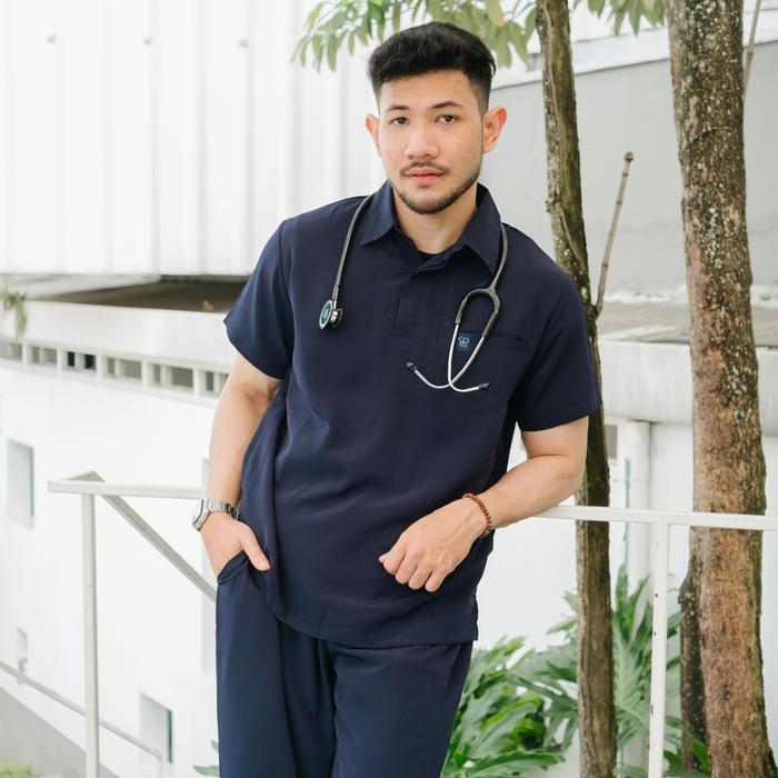 POLO - FIRST LINE Scrubs SS Lengan Pendek Baju Jaga Theatre Blues