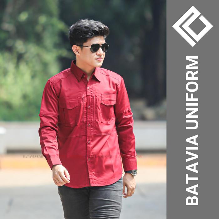 Baju TACTICAL Pria Lengan Panjang - Kemeja Seragam Kerja Dinas Lapangan Tactical MAROON Bahan