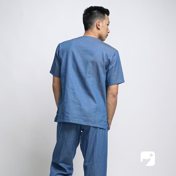 AERAMEDIKA - Seragam Medis Denim Series Lengan Pendek Unisex Baju Jaga Dokter & Perawat Celana