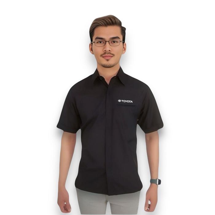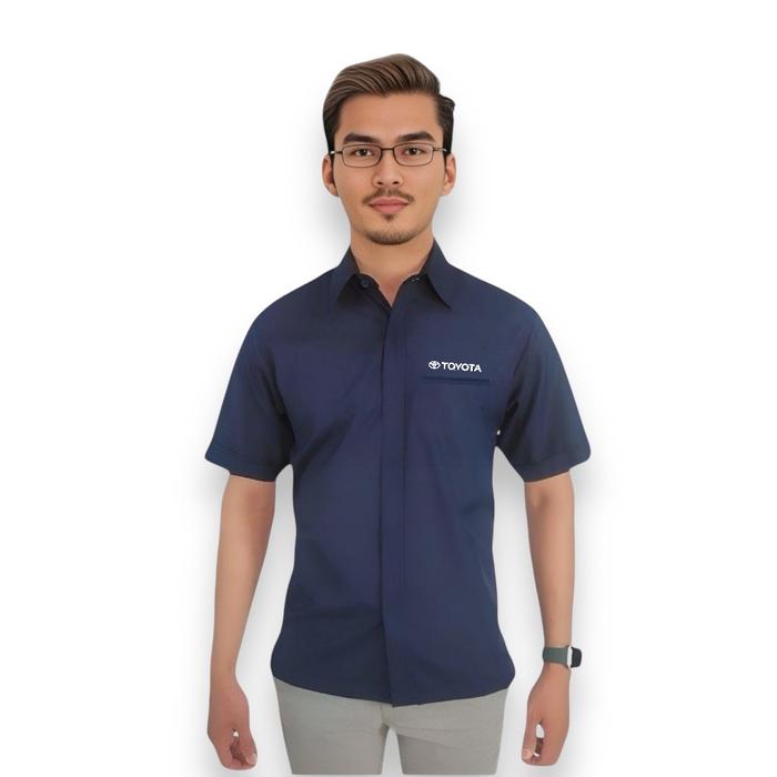 Kemeja TOYOTA 2 Warna navy & putih Hitam Panjang pendek Pria wanita full Bordir Kerja Seragam Tebal