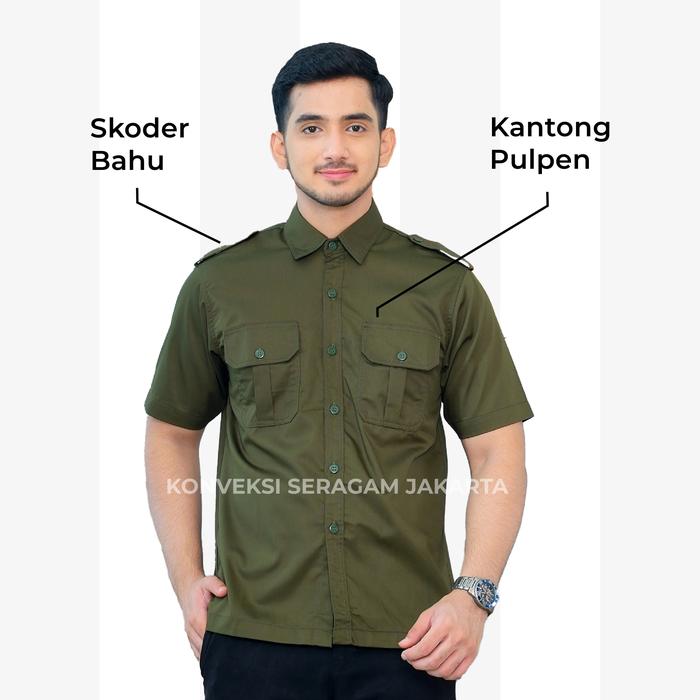 PDL Pendek Baju Kemeja Seragam Kerja Pakaian Dinas Lapangan Hijau Army Bordir