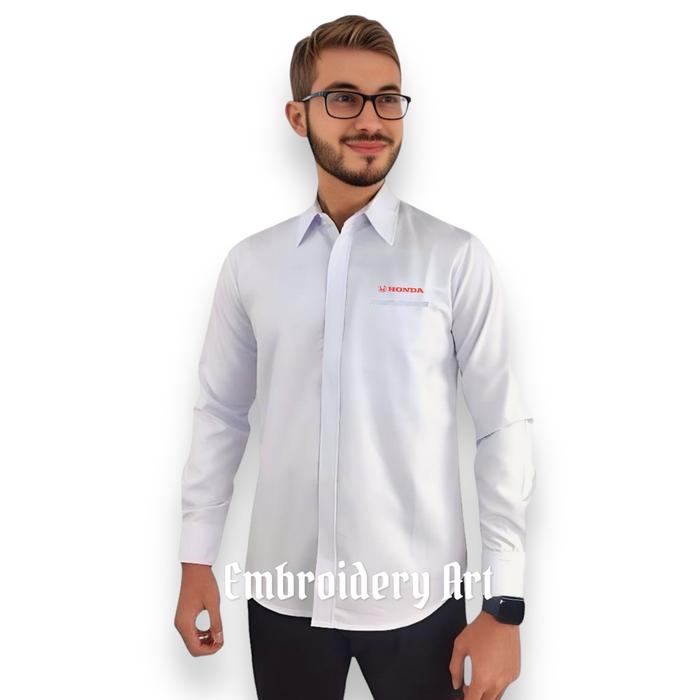 Kemeja Seragam HONDA Warna navy & putih Panjang pendek Pria wanita full Bordir Kerja