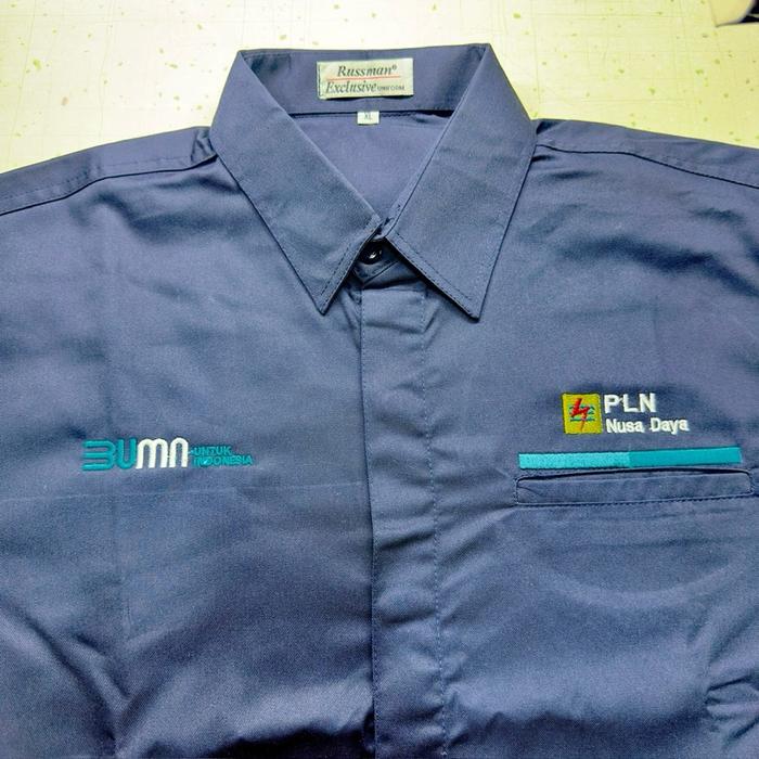 Kemeja Seragam PLN Nusa Daya Lengan Panjang , full bordir Pria - wanita Navy Putih Baju Kerja Atasan