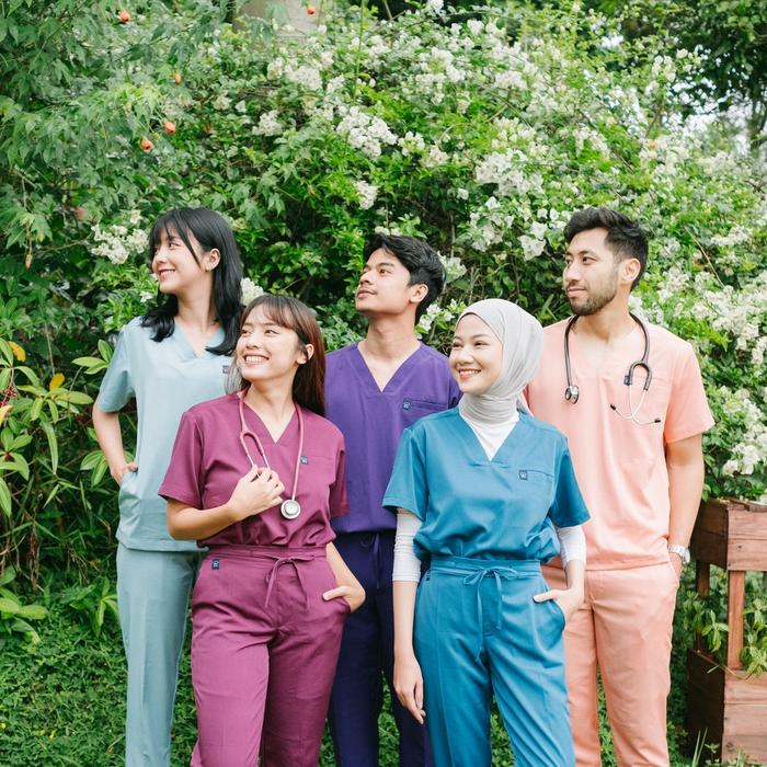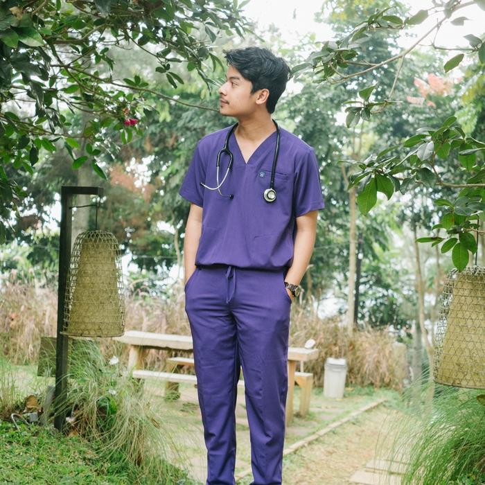 V NECK - CARDINAL BIRTHDAY Scrubs SS Lengan Pendek Celana Slim Fit Baju Jaga Theatre Blues