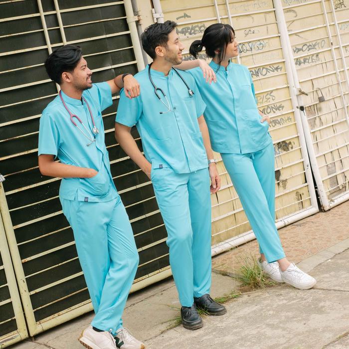 UDAYANA 01 - BALI BLUE CARDINAL Scrubs SS Lengan Pendek Celana Slim Fit Baju Jaga Theatre Blues