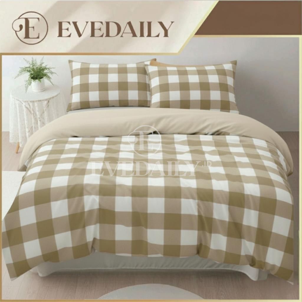 Bed Cover Set Gingham Khaki Mix Plain Khaki - 90x200 - 200x200