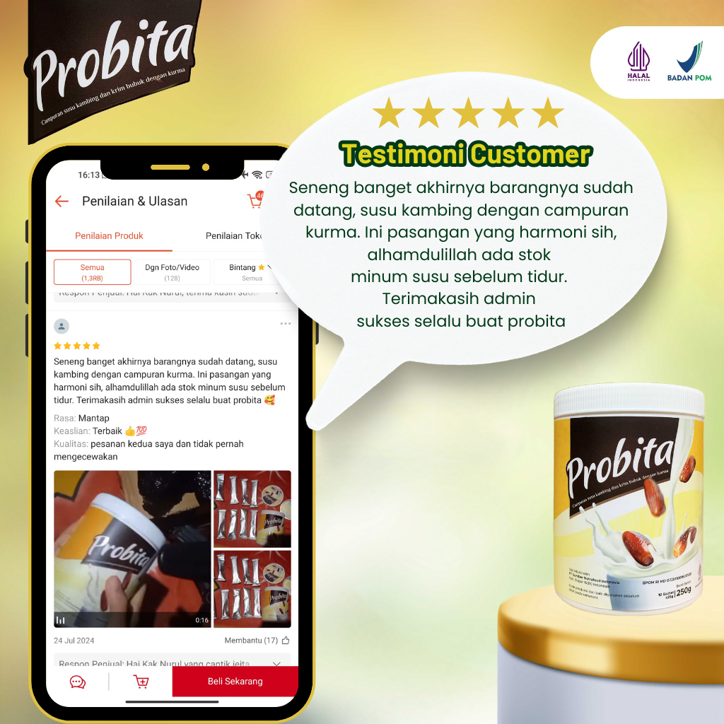 Probita Susu Kurma Ajwa 250Gr - Penambah Tinggi Badan Anak & Remaja - Rendah Gula - Bpom & Halal