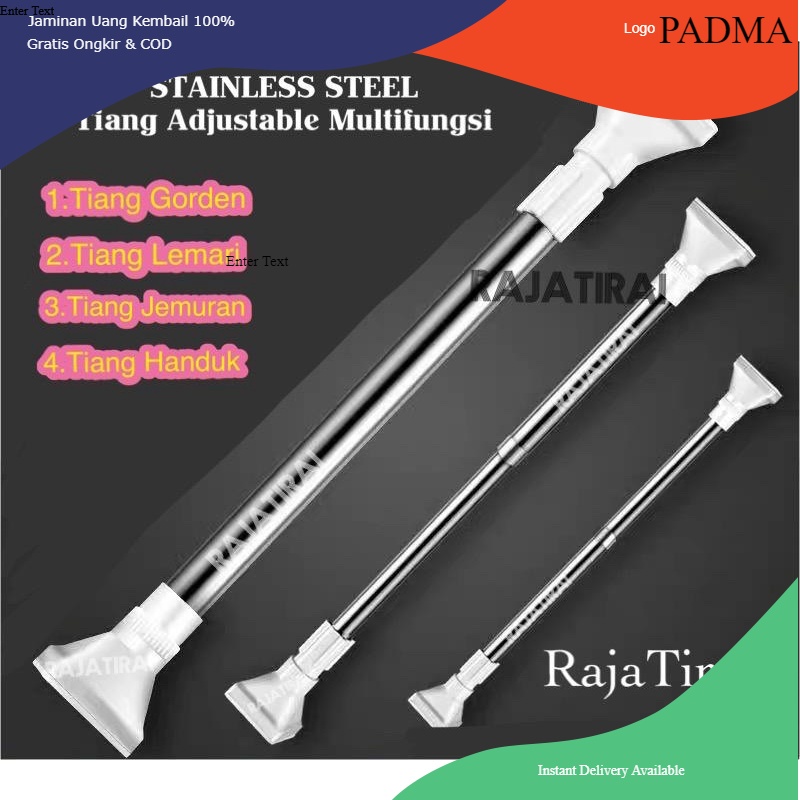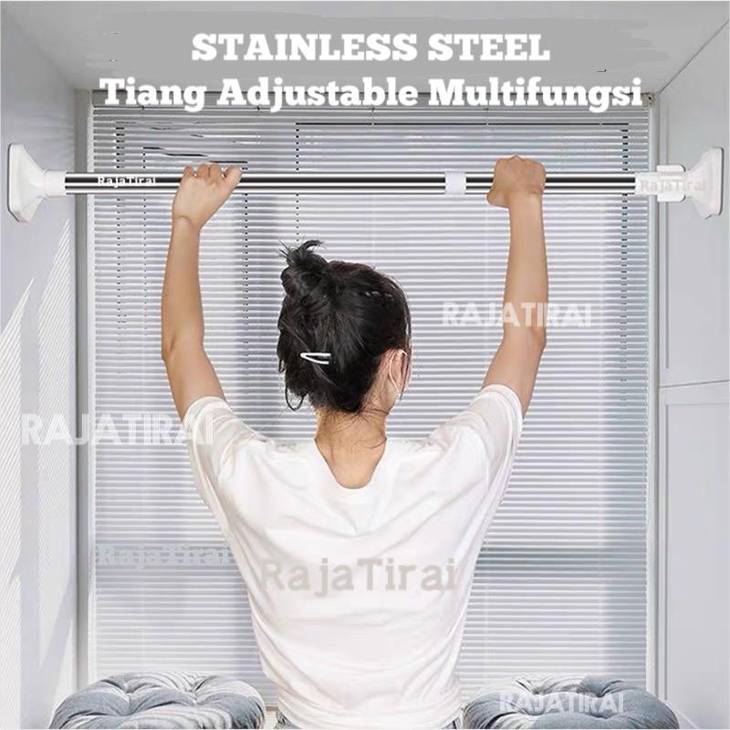PADMA-TIANG PIPA TONGKAT STAINLIST FLEKSIBEL 50CM-420CM tanpa paku/TIANG HORDENG GORDEN TIRAI PINTU JENDELA/TIANG TONGKA