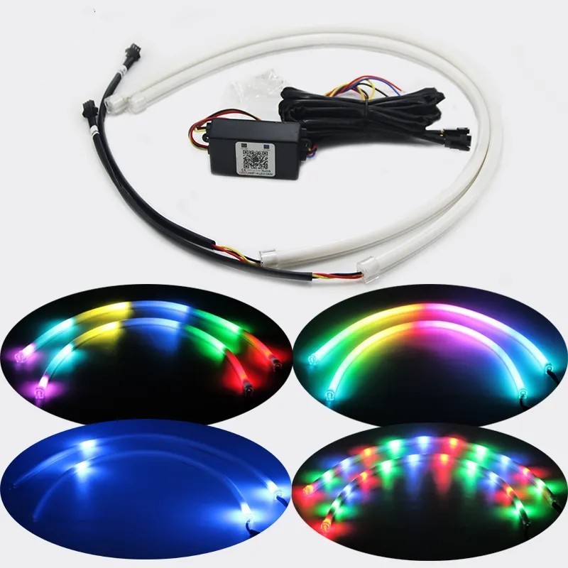 Lampu LED DRL Alis Flexibel WRGB APP 30/45/60CM Welcome + RGB Matrix Mobil Motor LED LAMP Bluetooth