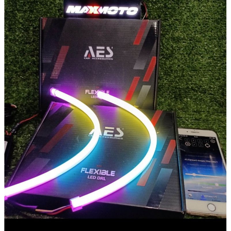 LAMPU ALIS LED DRL Huracan AES RGB SEIN RUNNING bluetooth Hp android/ios untuk mobil dan motor tesedia 30cm,45cm,dan 60c