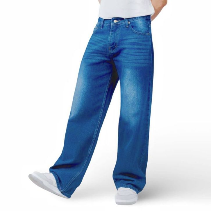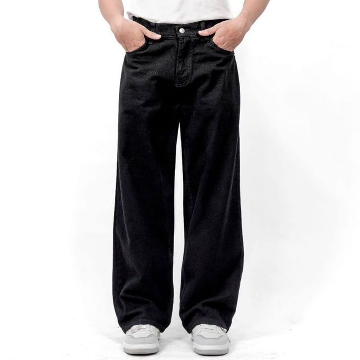 Celana Jeans Pria Baggy Jeans Loose Oversize Gombrong Lebar Skena Black Wishker