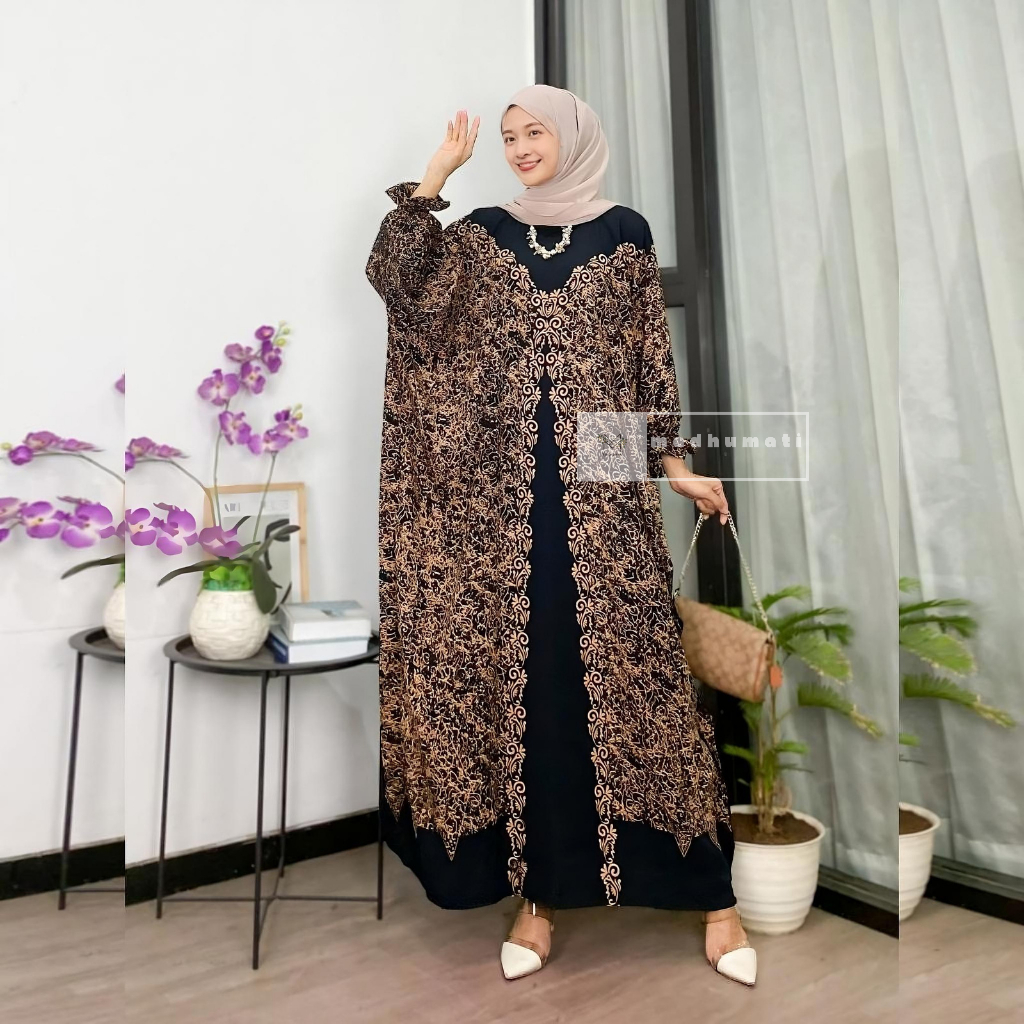 Madhumati.id GreenPine Kaftan Motif Catur Batik Soft Color Jumbo Busui Resleting Depan Rayon Premium