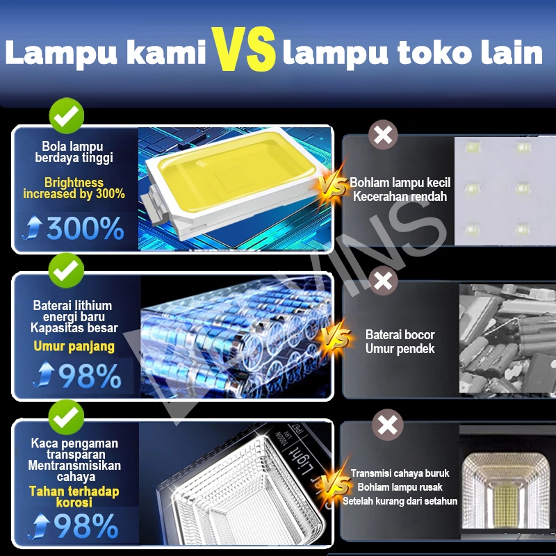 [Beli 1 Gatis 1] KELVINS Lampu tenaga surya 10000W lampu solar cell lampu outdoor IP68 Tahan air LED Lampu sorot Emergen