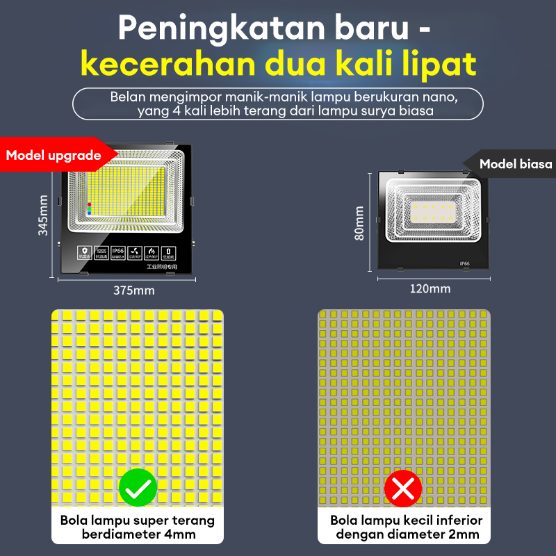 Beli 1 gratis1 Lampu tenaga surya Peningkatan Baru Lampu solar panel 10000W Lampu sorot solar cell lampu outdoor lampu s