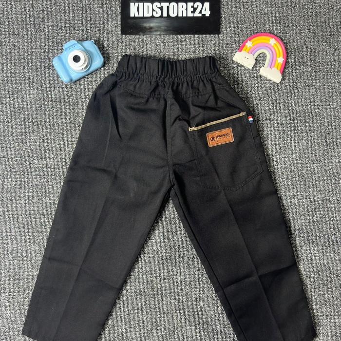 CELANA CHINOS PANJANG ANAK LAKI-LAKI PINGGANG KARET USIA 2-15 TAHUN BAHAN KATUN FASHION - HITAM, S 2-3 TAHUN MAX BB 17KG